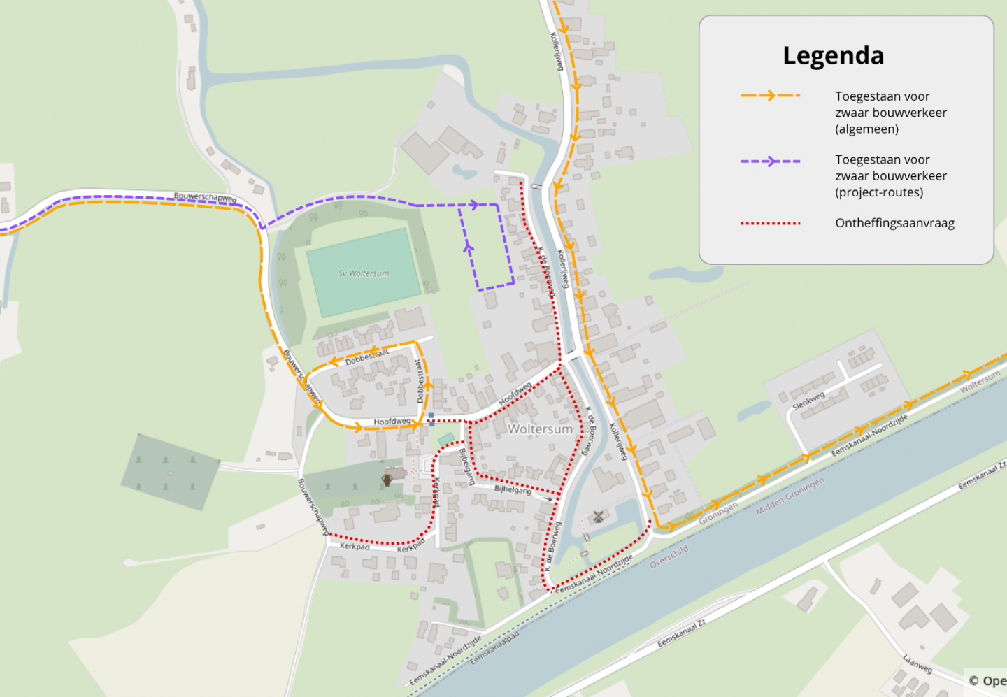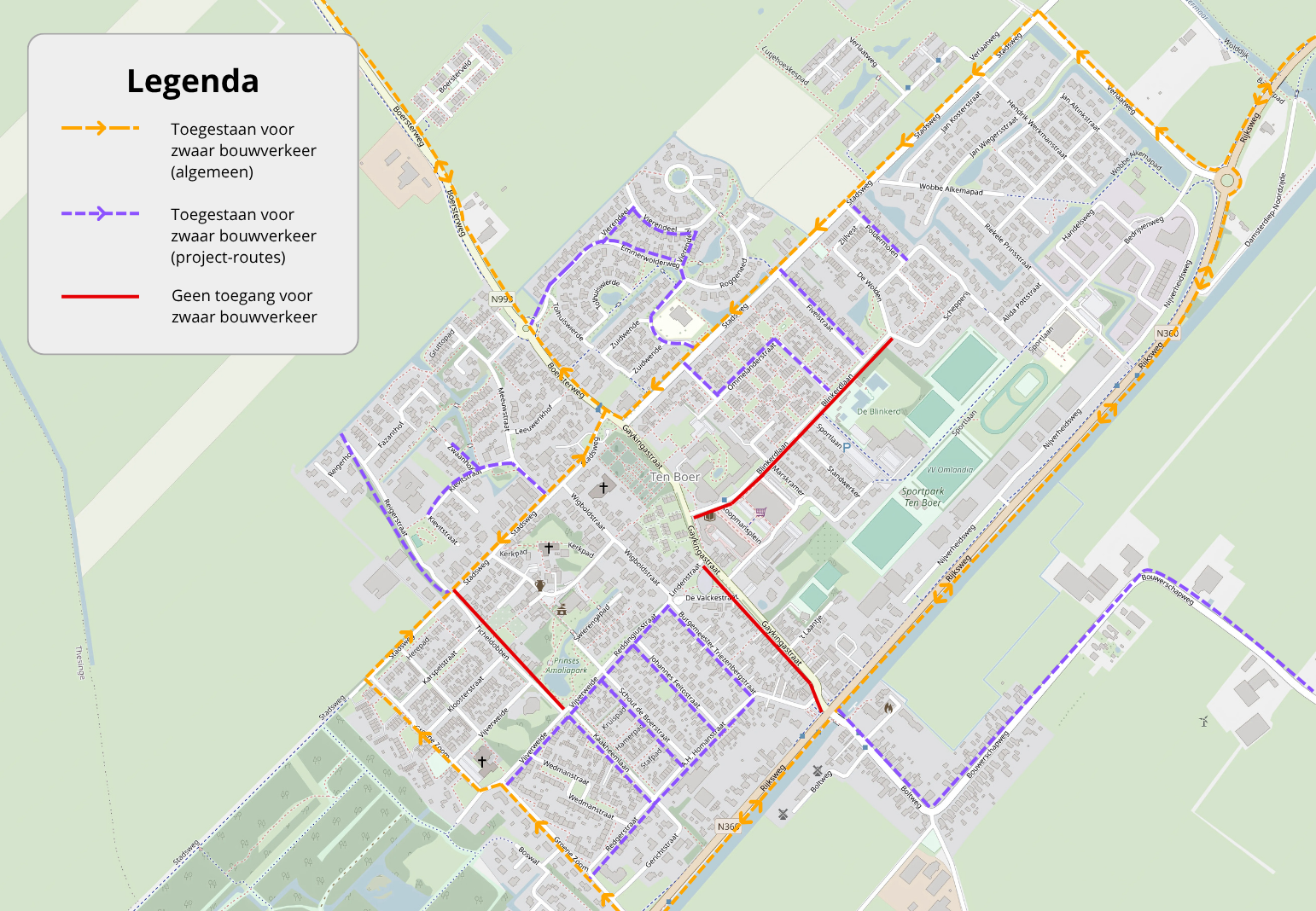 - Bouwverkeer rijdt via de aangewezen rijroutes.